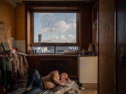 For this project I have worked with men that I met randomly in bars, on the street or social media. We agreed to spend some time together in their home-environment to talk and have a quiet moment. This could entail relaxing at home, smoking a cigarette in the park, or having a drink. Each session was really an exploration of identity, with an attempt on my part to create a photograph that represented my view on the individual. I think this intimacy that I shared with my subjects allowed me to capture part of their hidden identity. The resulting individual images each tell a story of a person in their bubble, their safe zone. The strong focus on the emotional side of this series is a personal attempt to break away from social constraints concerning manhood.